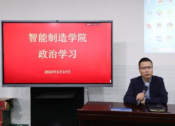 5月17日下午,智能制造学院在奥训楼308会议室开展了5月份政治理论集中学习,全院教职员工参加了学习,会议由智能制造学院党总支书记、院长熊江主持。