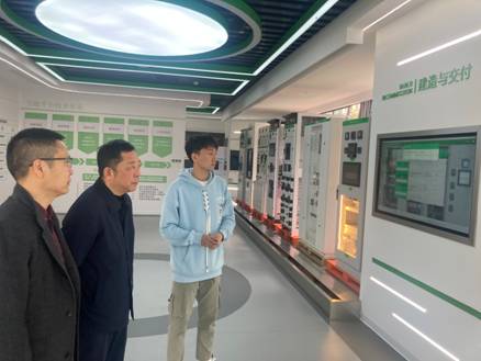 在重庆市万州绿色智造赋能中心,陈章书记一行参观了绿色赋能展厅、绿色制造典型应用场景,深入了解了重庆市各类型企业对绿色低碳赋能相关的人才需求。陈章书记指出,职业教育应主动承担起助推区域产业升级转型的重要使命,以“中法施耐德绿色低碳产教融合项目”为有效抓手,探索实践“政、校、企”协同育人模式,为重庆市相关企业施行绿色能效管理和精益数字化转型供给具备绿色低碳赋能理念的高素质技术技能型人才。