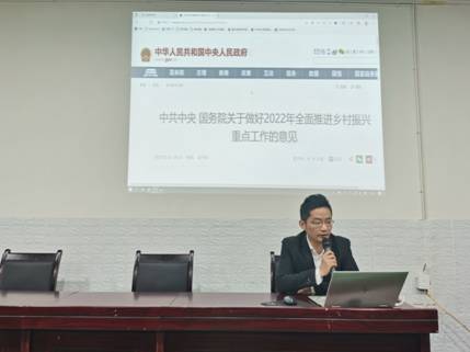 会上,智能制造学院副院长郎朗领学了2022年中央一号文件《中共中央国务院关于做好2022年全面推进乡村振兴重点工作的意见》和中共中央办公厅国务院办公厅印发的《关于加快推进乡村人才振兴的意见》,他表示,希望大家认真学习文件精神,抢抓机遇,在实际工作中结合自身情况,着力推动学院各项工作的进一步发展。