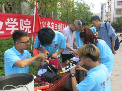 实践活动的最后两天,我院国情观察团的同学们为积极响应服务基层、服务三农的“三下乡”精神,结合我院的专业特色,来到恒合乡集镇上,通过向村民发传单、讲解的方式进行安全用电宣传,并为凤安社区居民进行了义务家电维修。