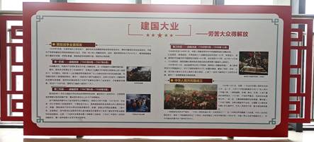 党史主题展板以“红色曙光”拉开篇章,从1921年的中共一大到1937年的抗日烽火,宣告中国共产党的正式成立到中国共产党的发展壮大;从1949年开国大典到1978年十一届三中全会,中华人民共和国正式成立到改革开放拉开帷幕;从2012年党的十八大到2017年党的十九大,从伟大复兴的中国梦到习近平新时代中国特色社会主义思想,每一次大会的重要精神和历史意义,都被提炼成了精简的文字叙述,8块图文并茂的展板贯穿百年时间轴。