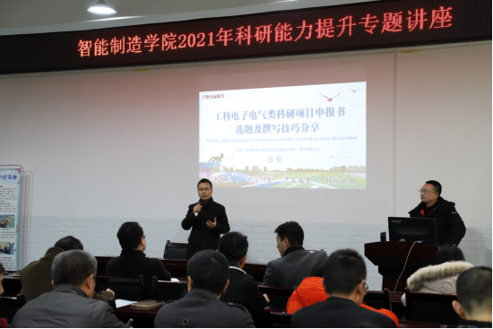2021年正值“十四五”开局之年,为了提升我院教师的科研能力,更好地服务社会,服务我校的“双高”建设。2021年3月9日下午,我院特邀重庆三峡学院蔡黎教授,在奥训楼308会议室为全体教师开展了一场名为《工科电子电气类科研项目申报书选题及撰写技巧分享》的专题讲座。讲座由智能制造学院院长熊江教授主持,全院教研室主任及专任教师聆听了本次讲座。