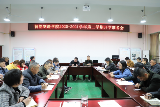 2020年2月26日,智能制造学院组织全体教职工在奥训楼308召开了第一次教职工开学准备会议。会上,熊江书记针对开学所做工作提了以下要求:1、抓好本学期疫情防控工作不放松,做好疫情防疫常态化。2、教学上抓好教学秩序工作,包括开学前的教学工作检查,教师备好课,上好课。3、上好开学第一课,抓好学生安全教育。4、抓好招生和就业工作。熊书记还强调,2021年正值“十四五”规划开局之年,也是中国共产党建党100周年,更是取得脱贫攻坚伟大胜利之时,我们在这一年里,一定要抓好学校双高建设这个契机,围绕智慧农业技术服务中心项目建设,打开专业发展思路,开拓社会培训新局面,同时还寄语全体老师进一步加强学习,提高政治站位,更好的为学生服务,为学院的发展作出更大的贡献!