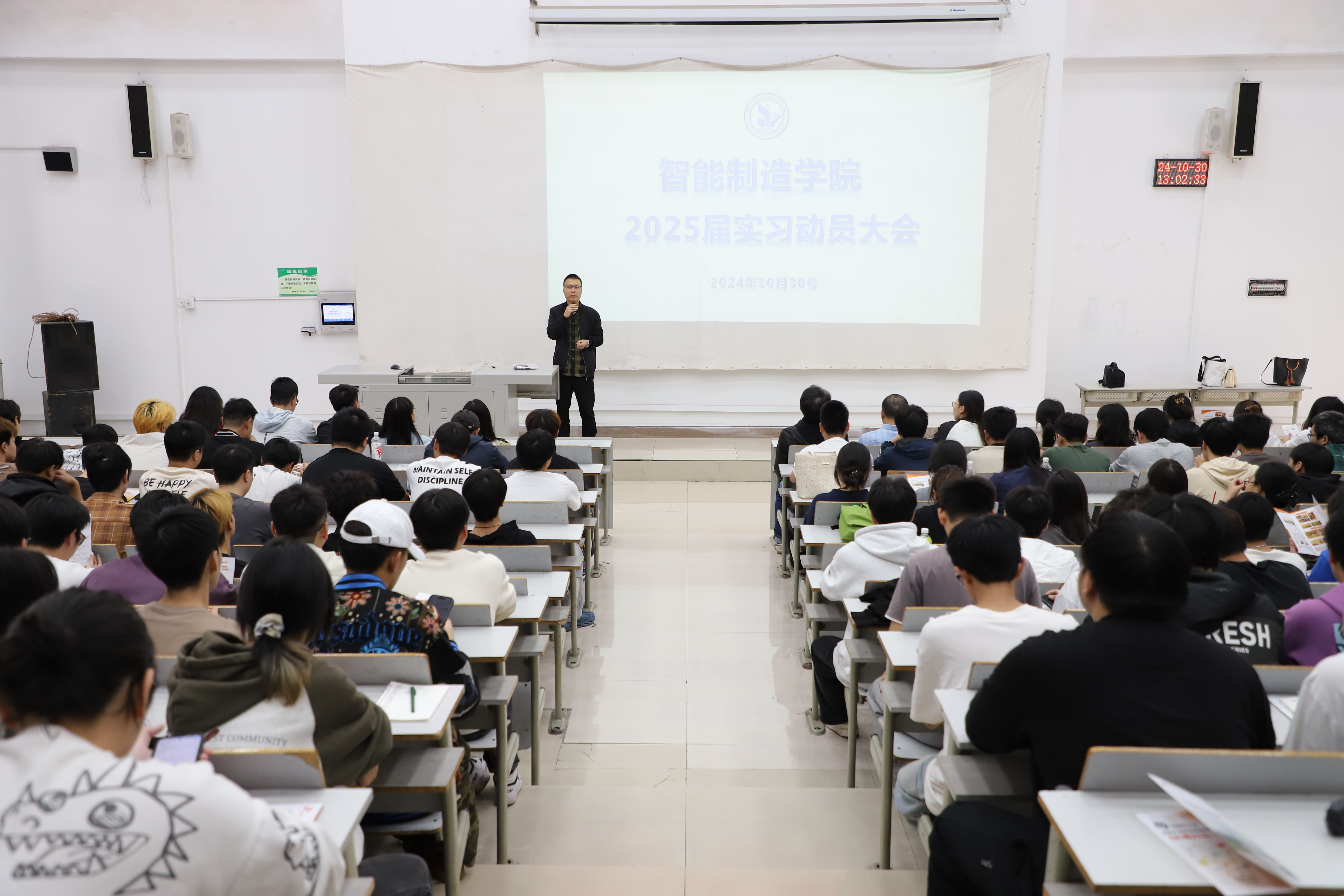 为全面推进落实智能制造学院2025届毕业生就业工作,引导毕业生树立正确的就业观念,提高就业积极性和主动性,11月4日中午,智能制造学院在博雅楼阶梯教室召开2025届毕业生就业动员大会,学院党总支书记、院长熊江、副书记黄滔、学工科和教学科相关负责人与2025届毕业年级辅导员老师出席会议, 2025届全体毕业生参加会议,会议由副书记黄滔主持。