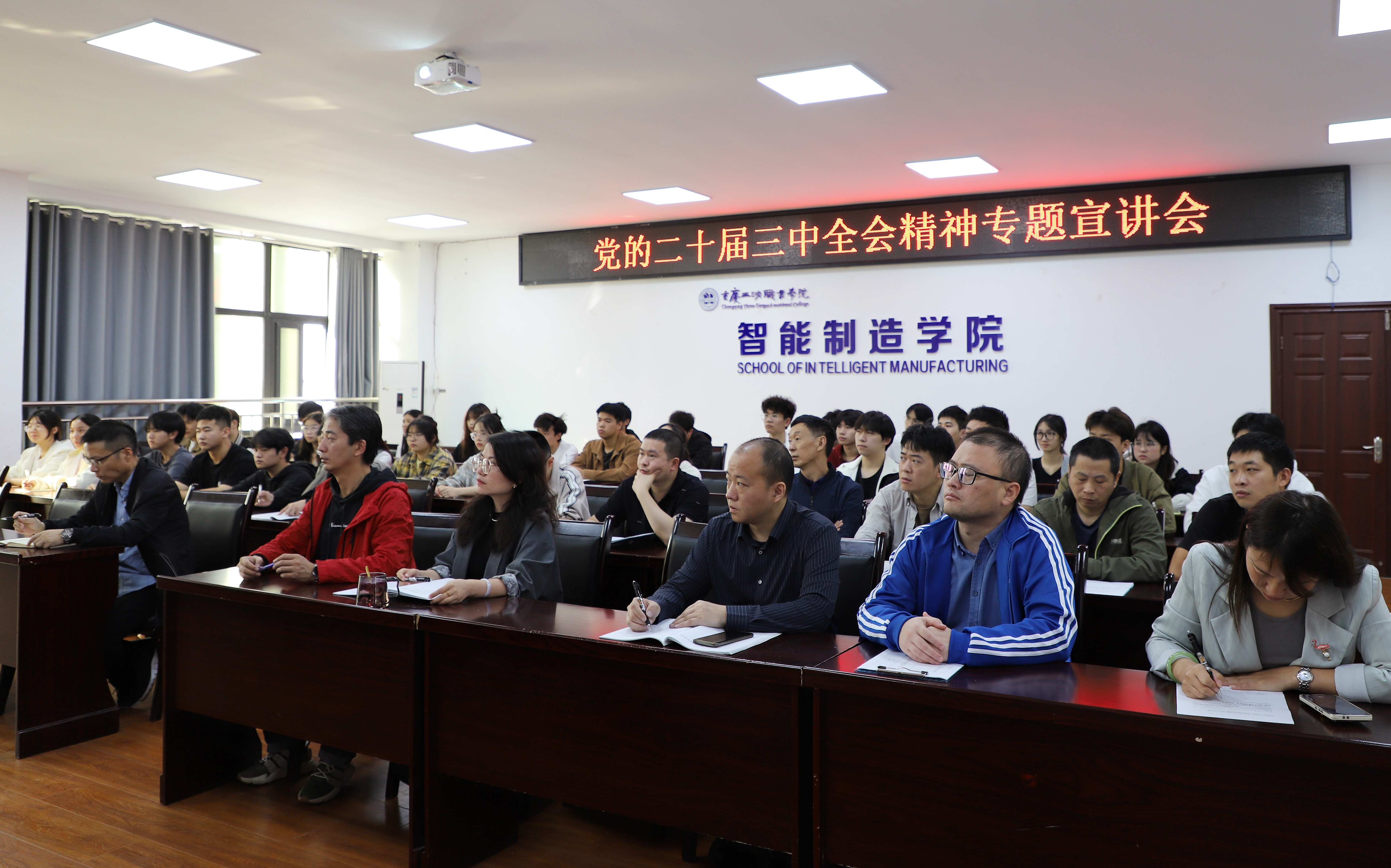 按照学院党委关于印发《学习贯彻党的二十届三中全会精神宣讲方案》安排,10月29日,学院党委委员、纪委书记米密在奥训楼308会议室,为智能制造学院党总支师生宣讲党的二十届三中全会精神。会议由智能制造学院党总支副书记黄滔主持,学院60余名师生参加了学习。
