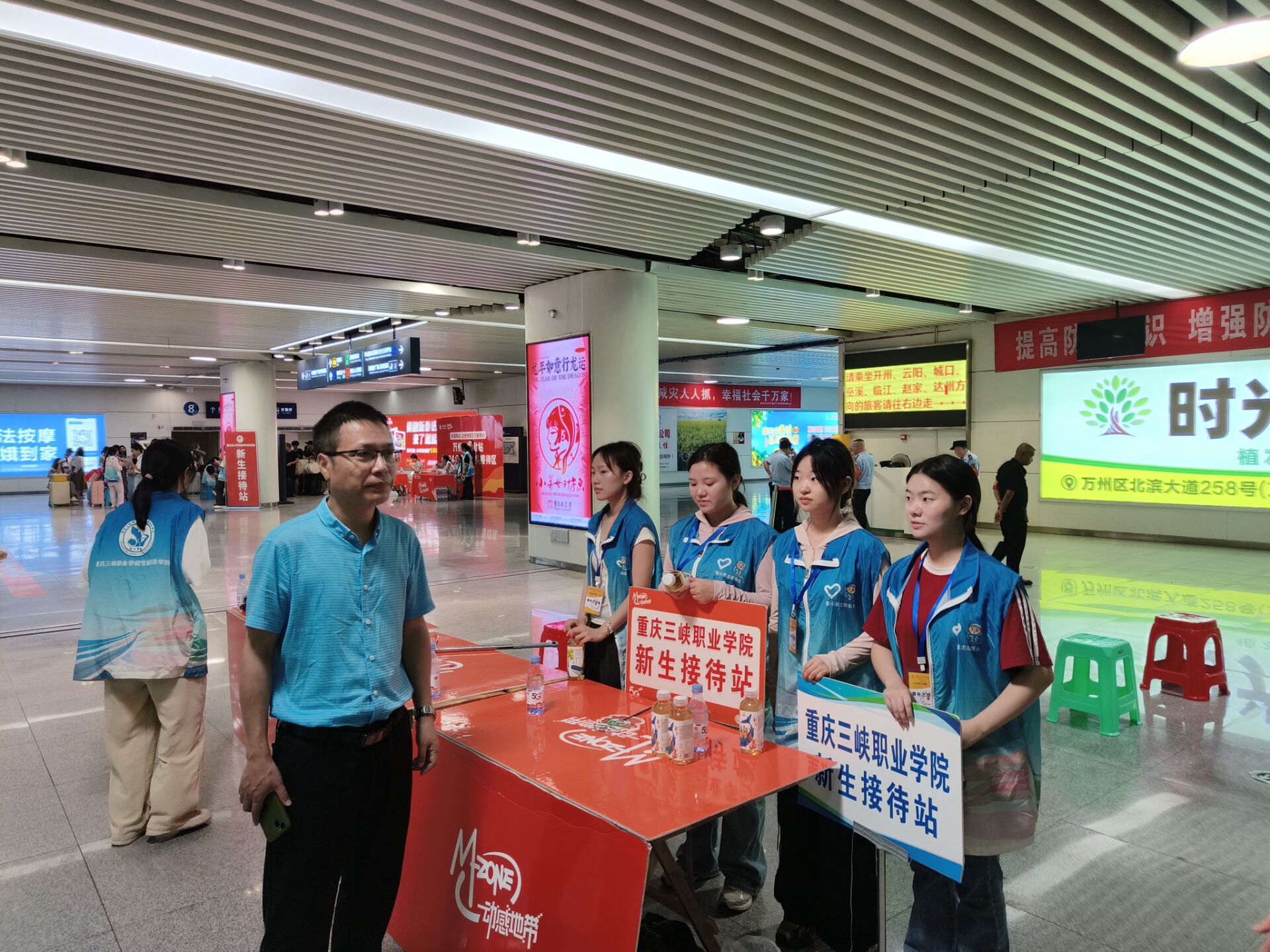 2024 年 9 月 19 日上午,智能制造学院书记熊江来到万州高铁北站,亲切看望在这里辛勤付出的迎新志愿者们。