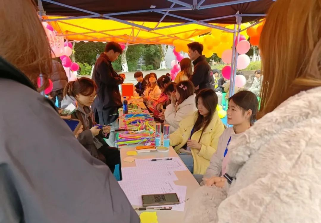 活动现场精彩纷呈,设置了多个趣味十足的环节。心愿墙区域,师生们纷纷将心愿或对他人的祝福写在卡片上,并留下联系方式张贴上墙。同学们可自主选择认可的心愿,助力其实现,这一互动不仅传递了互帮互助的温暖,更增进了彼此间的情谊。“纤手之舞”手工DIY区同样人气高涨,卡纸、扭扭棒和彩色笔在大家手中幻化成精美的花朵、俏皮的贺卡,现场满是欢声笑语。而100%中奖率的“好运上上签”抽奖环节更是将活动推向高潮,定制书签、精美礼品以及隐藏款惊喜,让参与者收获满满。