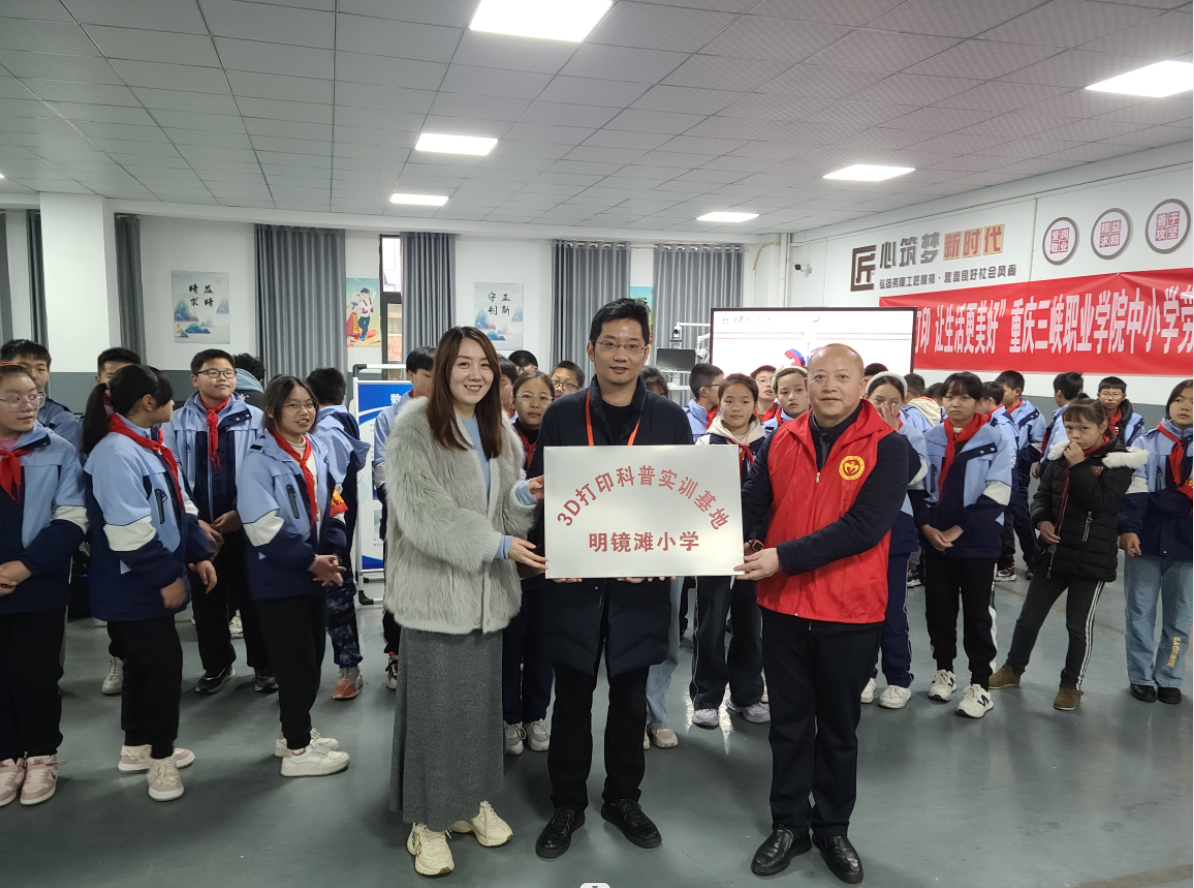 活动中,明镜滩小学副校长张翔为智能制造学院3D打印实训基地授牌“明镜滩小学3D打印科普实训基地”,双方商定将进一步推动学生科技活动的交流合作。接下来,明镜滩小学6年级的师生们参观了我校的3D打印实训基地,并参与了一系列富有教育意义的科普活动。