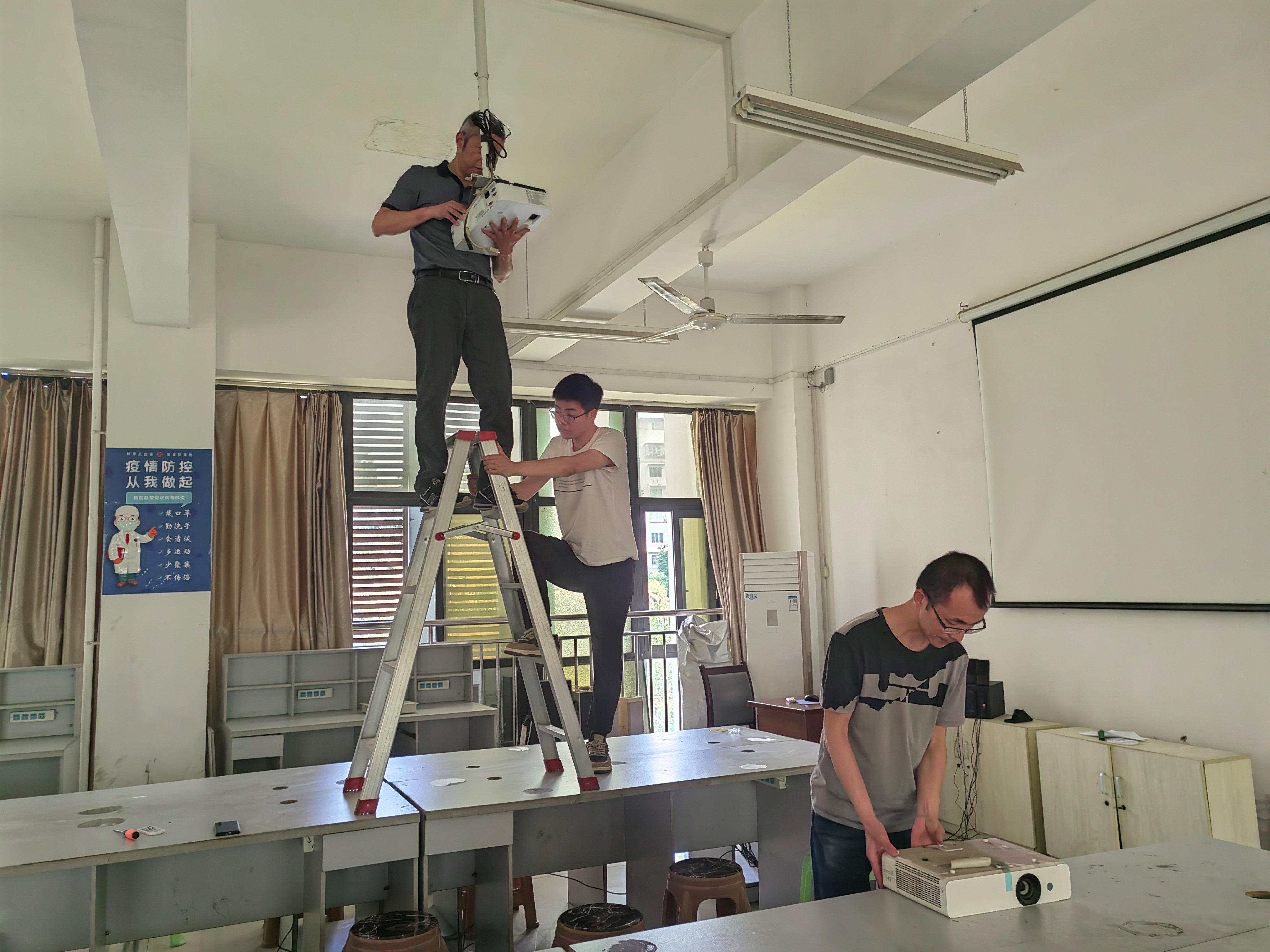 310实训室拆卸维修投影设备