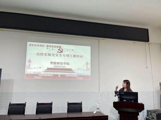 为深入贯彻落实党中央、国务院关于安全生产工作的决策部署,确保新冠肺炎疫情常态化防控下学校实验室有序运行,保障广大师生人身安全和校园稳定,近日,智能制造学院在奥训楼308开展了实验室安全专题培训,会议由实训中心主任姜妮主讲,学院全体教职工参加了学习。