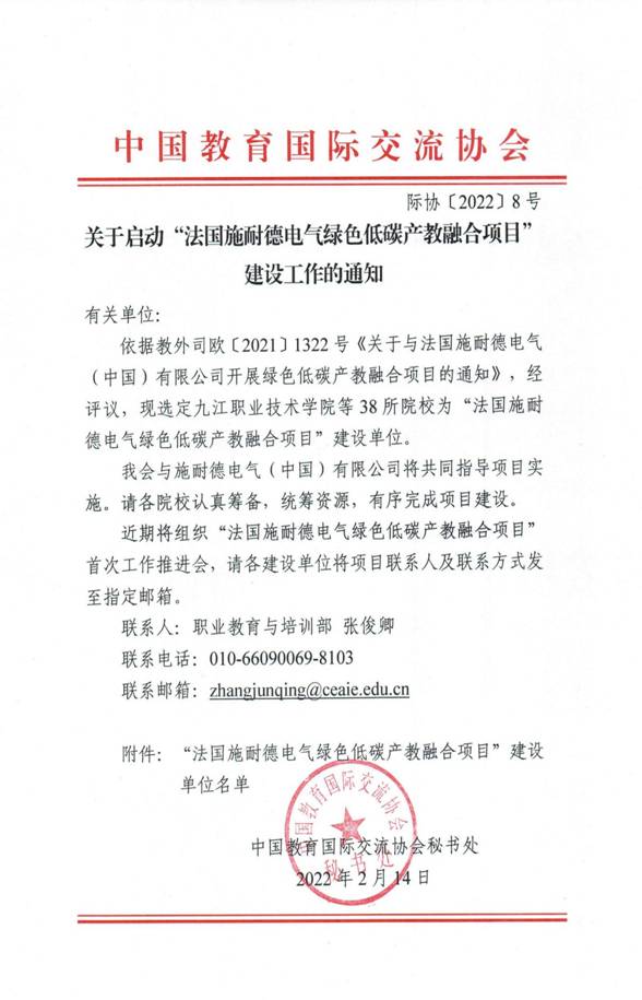 附件:关于启动“法国施耐德电气绿色低碳产教融合项目”建设工作的通知