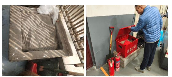 检查中发现,数铣车间消防沙池内有散落的闲杂物料,有关人员引导学生进行清理,摆放于消防区以外的其它合适地点。