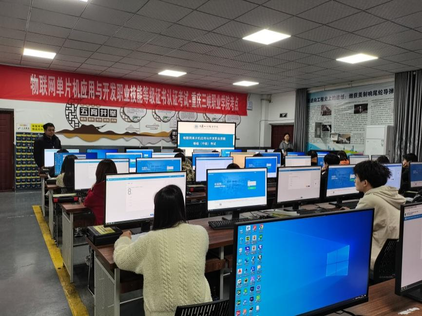 11月23日,智能制造学院成功举办了物联网单片机应用与开发职业技能等级(中级)证书考试,考试分为理论考核和实操考核,理论考核1小时,实操考核2.5小时。此次中级证书考试共有电子信息工程和移动互联应用技术120名学生参考,是学院“1+X”证书制度实施的重要组成部分,旨在通过专业考试,选拔和培养具备物联网单片机应用与开发能力的高素质技术技能型人才。