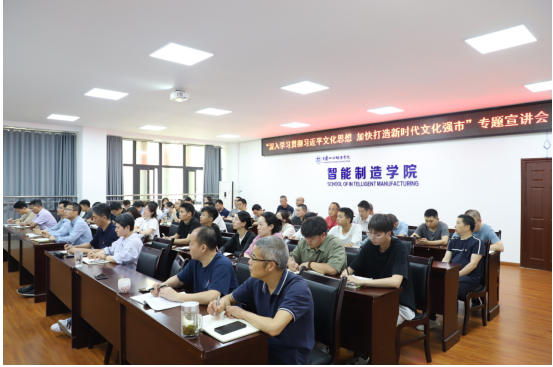 为全面深入学习贯彻习近平文化思想,深刻理解和把握习近平文化思想的精髓要义、深刻内涵和实践要求。5月21日,学校党委委员组织部部长熊辉俊以《深入学习贯彻习近平文化思想 加快打造新时代文化强市》为题在奥训楼308会议室为智能制造学院师生进行了专题宣讲,会议由学院党总支副书记黄滔主持。