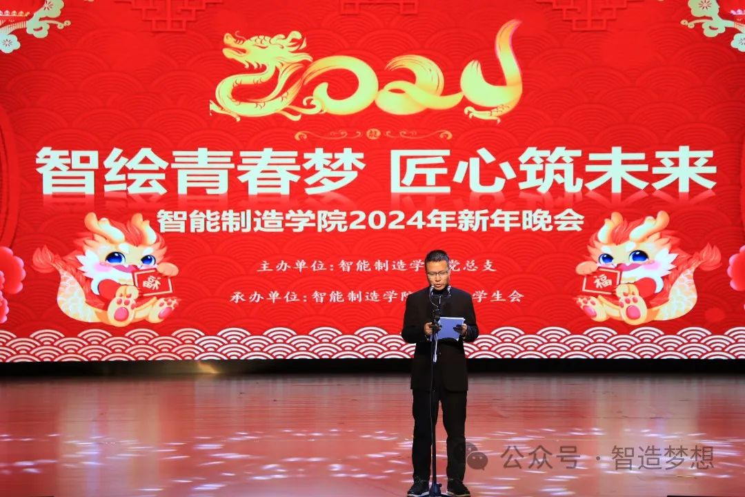 2024年1月3日下午17点,智能制造学院“智绘青春梦,匠心筑未来”2024年新年晚会在重庆三峡职业学院大学生活动中心正式开幕。学校党政办、学工部、校团委、智能制造学院相关负责人及600余名师生欢聚一堂,共贺新年。