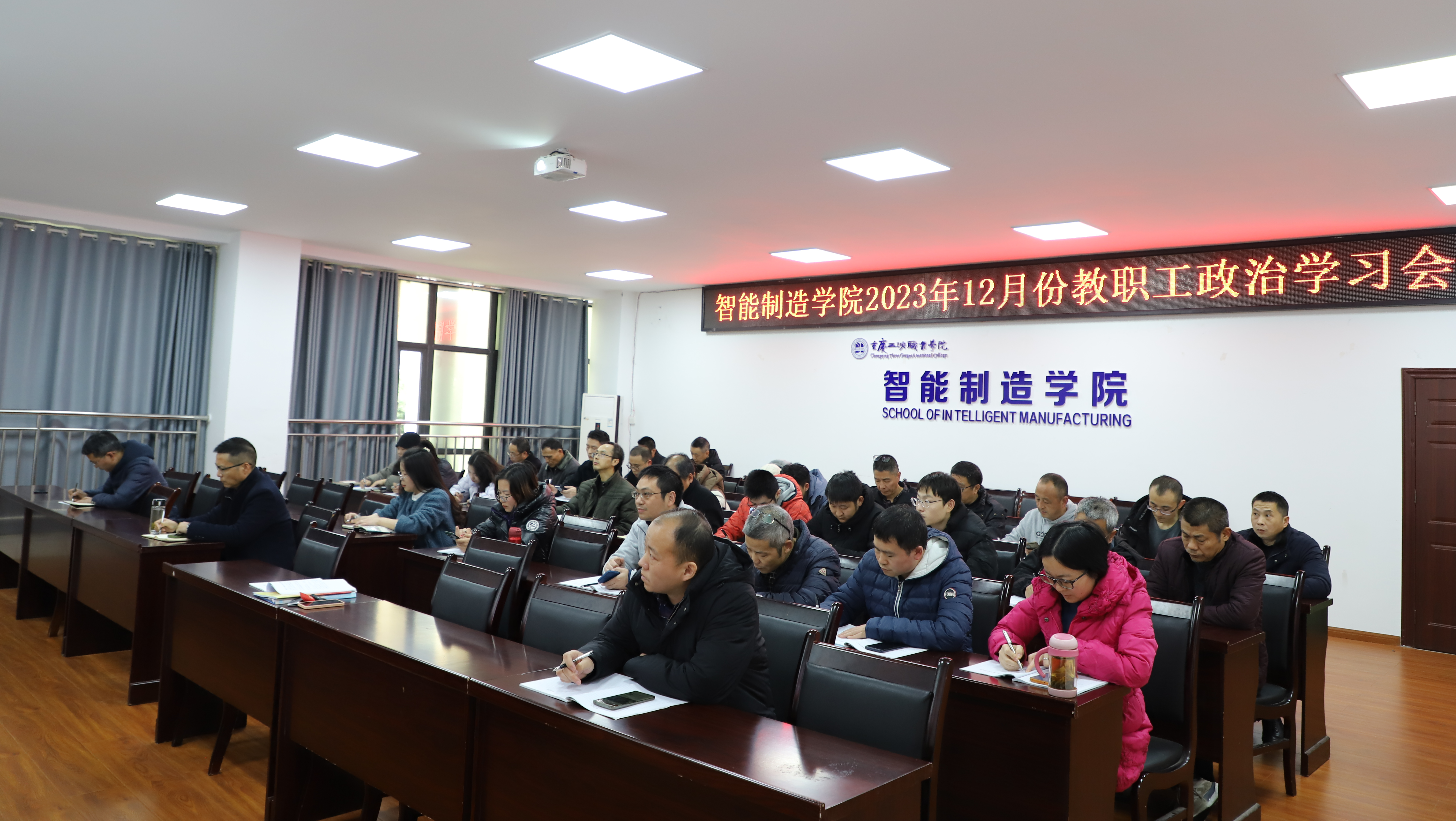 12月12日下午,智能制造学院在奥训楼308会议室开展了12月政治理论学习,会议由党总支组织委员杨德君主持,全体教职工参加了学习。