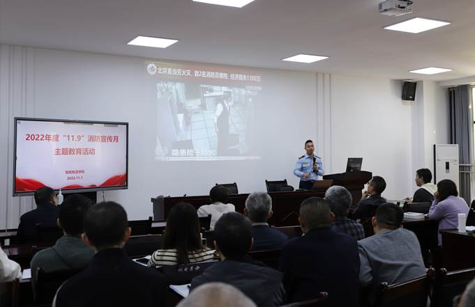 为提升智能制造学院师生消防安全素质和抵御灾害事故能力,确保我院师生生命财产安全。2022年11月1日下午,智能制造学院在奥训楼308会议室举行了2022年度“119”消防宣传主题教育学习暨消防宣传月启动仪式。学院全体教职工、各班级学生安全委员参加了学习。会议由智能制造学院党总支副书记黄滔主持。