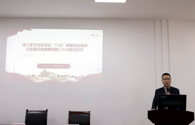 会上,智能制造学院党总支宣传委员吴莉莎首先领学了《习近平谈治国理政》第四卷中第五篇和第十三篇的内容,学院党总支书记熊江以“深入学习习近平总书记‘7.26’重要讲话精神,以实际行动迎接党的二十大胜利召开”为题,结合学院工作实际做了专题发言。随后,学院专职组织员杨德君和教师代表谢红就学习内容分别做了交流发言。