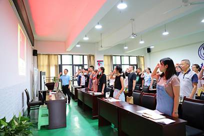 会上熊江书记首先宣布了新进党员的名单,对他们的加入表示热烈的欢迎和祝贺,并对他们提出了殷切希望。随后,在熊江书记的带领下,全体党员老师和新进党员们面对鲜红的党旗一同重温了入党誓词。