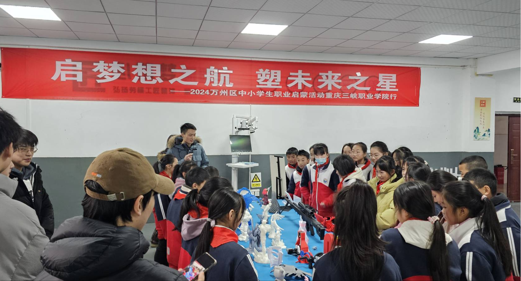 为提升职业教育内涵,丰富青少年社会劳动实践的体验,引导中小学生认识不同职业的工作内容、感受各行各业的劳动价值,从而树立正确的职业观、劳动观和人生观,12月23日,学院带领鹏程小学师生50余人,参观了我院的3D打印实训基地。本次活动由增材制造专业教师王建讲解。