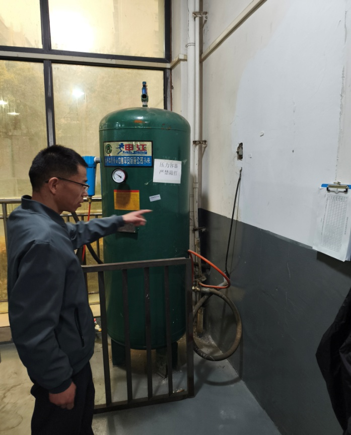 本次检查,未发现存在安全隐患。消防设施数量齐全,性能正常,外观无缺陷。压力容器在合理压力区间正常运行,并且车间操作人员做到每日填写使用情况记录。