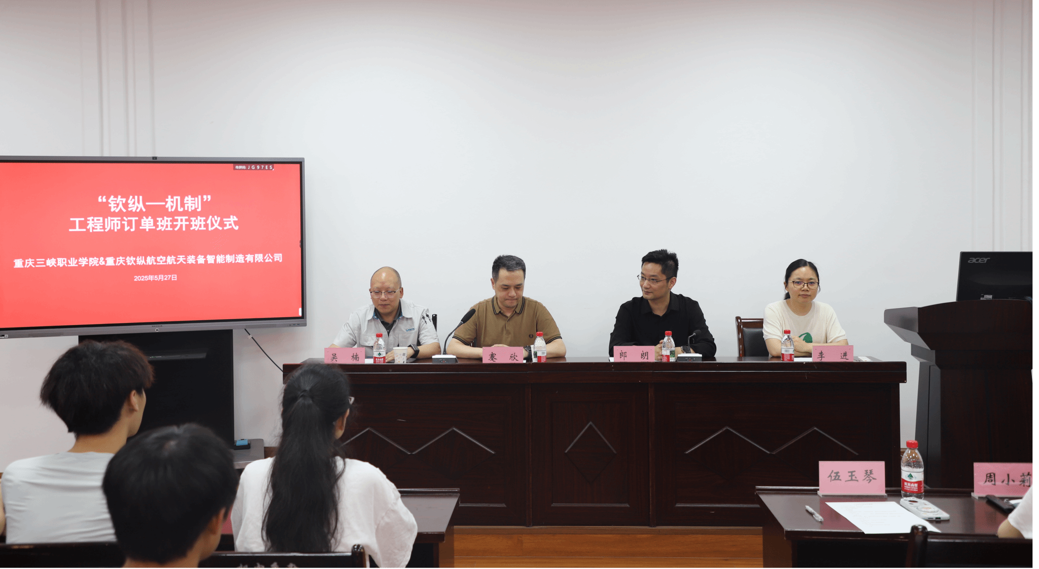 2025年5月27日,由重庆三峡职业学院与重庆钦纵航空航天装备智能制造有限公司联合举办的“钦纵—机制”工程师订单班开班仪式在奥训楼308隆重举行。智能制造学院领导、企业代表、订单班全体学生及专业教师共同出席,标志着机制专业深度校企合作迈入了新阶段。