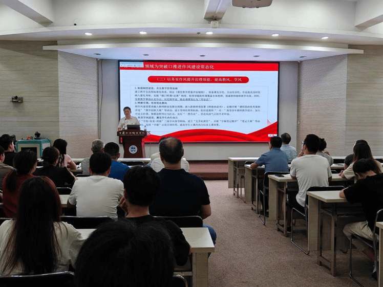 针对纠治“四风”工作,张校长提出要刀刃向内,对照标准深入查摆形式主义、官僚主义等 四风 问题在学院工作中的具体表现,做到不回避、不遮掩。同时,以教学管理、科研建设等重点领域为突破口,完善制度、强化监督,推动作风建设常态化、长效化,为学院事业高质量发展筑牢坚实保障。