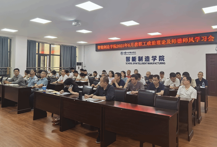 6月19日下午,智能制造学院在奥训楼308会议室开展了6月教职工政治理论及师德师风专题学习会,会议由党总支副书记黄滔主持,全体教职员工参加本次学习。