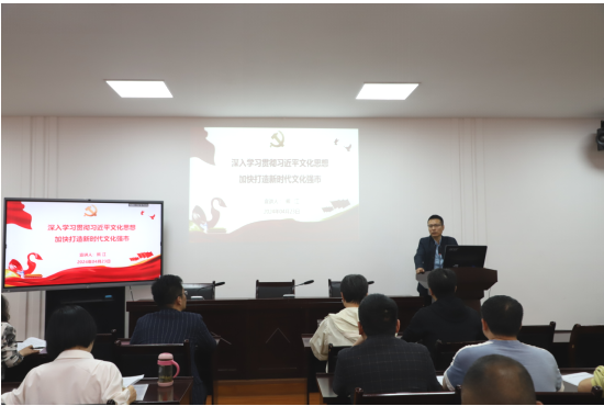 为全面深入学习贯彻习近平文化思想,深刻理解和把握习近平文化思想的精髓要义、深刻内涵和实践要求。5月21日,学校党委委员组织部部长熊辉俊以《深入学习贯彻习近平文化思想 加快打造新时代文化强市》为题在奥训楼308会议室为智能制造学院师生进行了专题宣讲,会议由学院党总支副书记黄滔主持。熊部长围绕“深刻认识提出习近平文化思想的重大意义”、“深入把握习近平文化思想的丰富内涵和实践要求”、“学习贯彻习近平文化思...