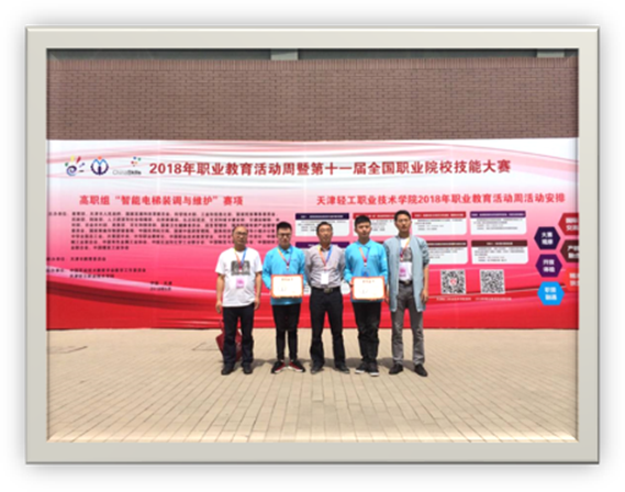 “智能电梯装调与维护”项目荣获全国职业技能大赛二等奖2018年5月全国职业技能大赛高职组“智能电梯装调与维护”项目比赛在天津中德技术应用大学成功举行,全国共计81支队伍参与该项目角逐,参赛选手需在不间断的5小时内完成电梯电气控制原理图设计与绘制、电梯结构安装与检测调整、电梯电气控制柜的器件安装与线路连接、电梯控制程序设计与调试、电梯故障诊断与排除,以及电梯运行调试与保养等比赛任务。我院机械与电子工程系...