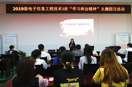 为深入贯彻学习2020年全国“两会”精神,引导团员青年关注时政国情,提升青年人的思想觉悟,深化青年人的时代责任和使命担当,6月18日上午,2019级电信3班开展了“学习两会精神 做新时代青年”主题团日活动。智能制造学院党总支书记、院长熊江教授,学工科科长吴莉莎,团总支书记谭力以及各班辅导员老师、团支书代表参加了此次活动。活动在共青团团歌中拉开序幕,随后熊江书记给大家带来了一堂生动的主题微团课。他向大家深入...